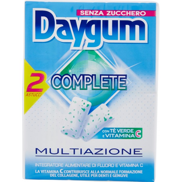 I chewing gum Daygum Complete hanno una multipla azione, grazie al loro apporto sia di fluoro che di Vitamina C. Gomme da masticare senza zucchero in due pratici astucci da portare sempre con te. Fai la spesa online su Cicalia!