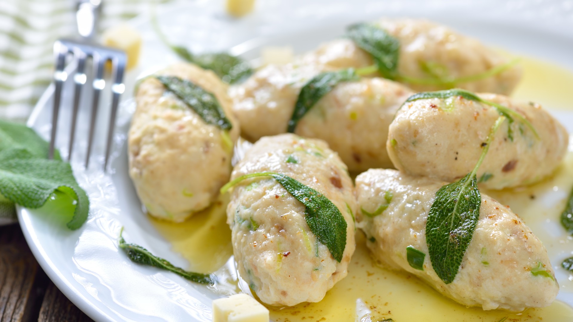 Taglia 200 g di pane raffermo a cubetti, ammollalo con 100 ml di latte e unisci 2 uova sbattute, 1 ciuffo di prezzemolo, erba cipollina, sale e pepe. A parte, rosola ½ cipolla con 100 g di speck in 20 g di burro, poi uniscili all’impasto. Forma delle palline, infarinale con 20 g di farina e cuocile per 10 minuti in brodo vegetale bollente. Servi i canederli caldi, con erba cipollina fresca.