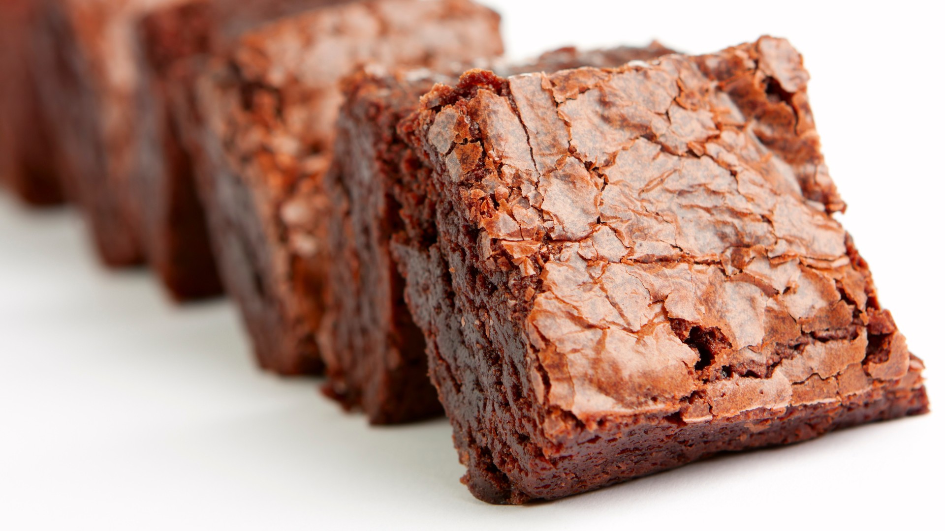 Fai sciogliere 250 g di cioccolato fondente con 80 g di burro a bagnomaria e lascialo raffreddare. Separa 4 uova: monta gli albumi a neve con un pizzico di sale e, a parte, sbatti i tuorli con 150 g di zucchero fino a ottenere un composto chiaro. Unisci ai tuorli il cioccolato fuso, 100 g di mandorle tritate, 1 bicchierino di rum e una tazzina di caffè; mescola. Incorpora delicatamente gli albumi montati. Versa in una teglia foderata, cuoci a 180 °C per 30 minuti, fai raffreddare, taglia a quadrotti e servi.