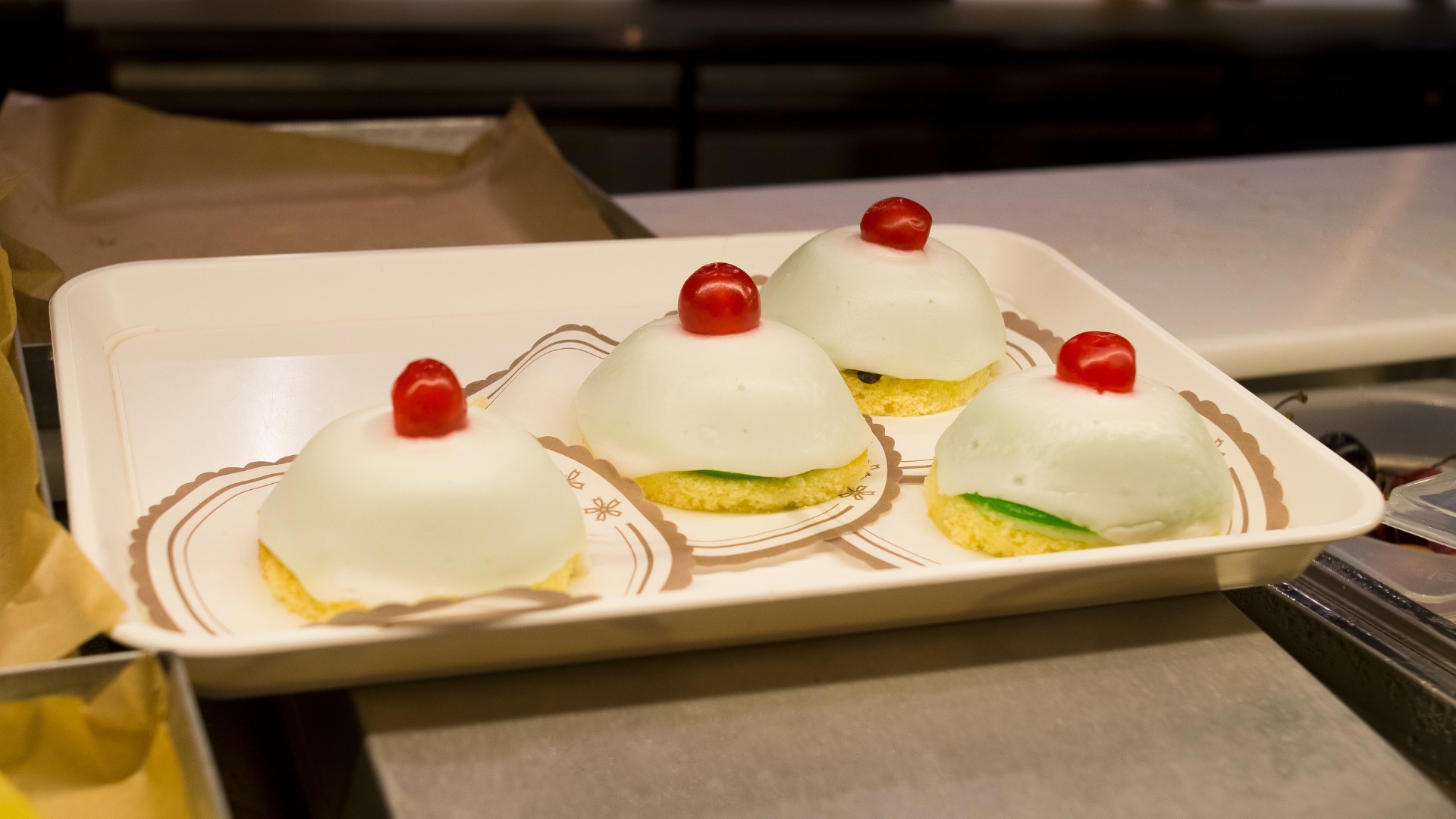 Prepara una frolla con 300 g di farina, 100 g di burro, 100 g di zucchero e 1 uovo. Per il ripieno, usa ricotta di pecora setacciata con zucchero, gocce di cioccolato e canditi. Ritaglia dei dischi, farcisci e chiudi a cupoletta. Inforna a 180° per 25 minuti, poi glassa con zucchero fondente e decora con una ciliegina rossa. Tradizione e dolce ironia.