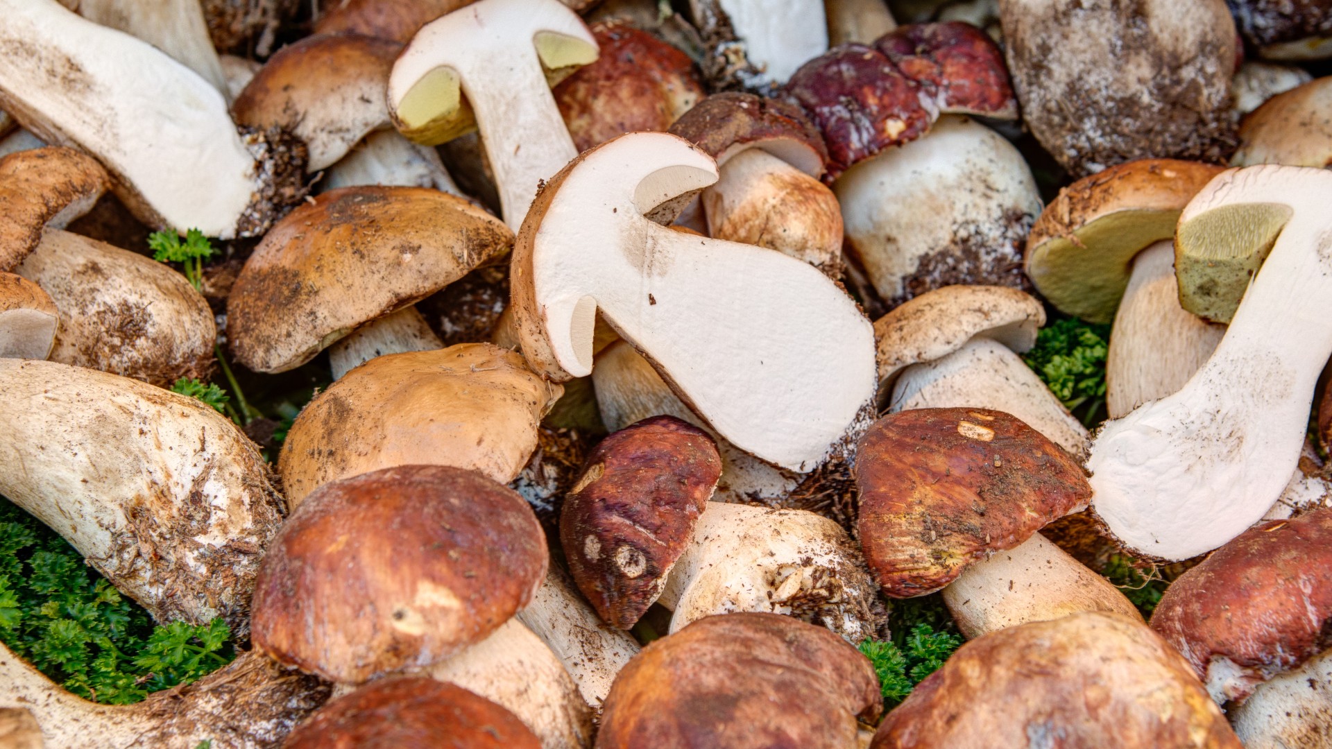 Fai rinvenire 20 g di porcini secchi in brodo tiepido e conserva il liquido. Pulisci 400 g di porcini freschi, affetta le cappelle e trita i gambi. Rosola 2 spicchi d’aglio in olio evo con un rametto di nipetella, poi aggiungi i funghi freschi.