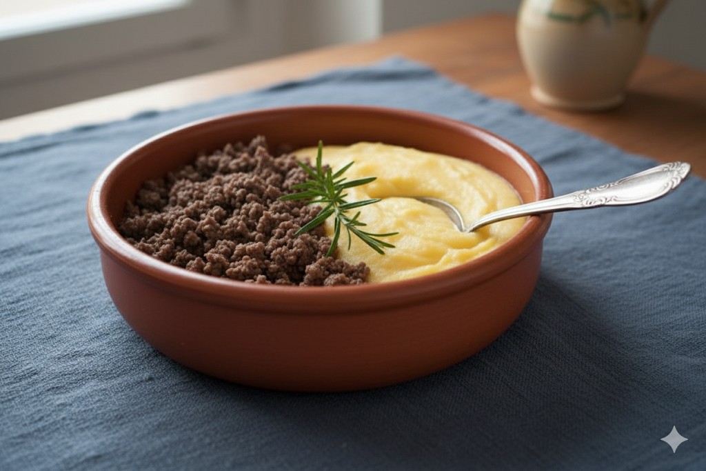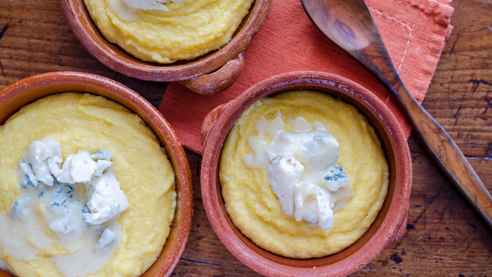 Prepara una polenta morbida, sciogliendo 200 g di farina di mais in 1 litro d’acqua salata e mescolando per circa 40 minuti. In una ciotola, metti 200 g di gorgonzola dolce e schiaccialo con un cucchiaio, ammorbidendolo con un po’ di latte. Servi la polenta in una fondina, aggiungi al centro la crema di gorgonzola e un filo di olio EVO.