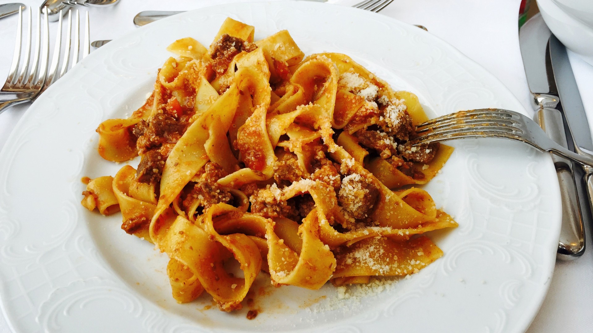 Prepara un ragù di lepre (o cinghiale): in una casseruola, fai un soffritto con 1 carota, 1 cipolla, 1 costa di sedano tritati. Aggiungi 500 g di polpa di lepre (o cinghiale) macinata e fai rosolare bene. Sfuma con 1/2 bicchiere di vino rosso, quindi aggiungi 400 g di passata di pomodoro, 1 foglia di alloro e rosmarino. Lascia cuocere a fuoco lento per almeno 2-3 ore. Cuoci 350 g di pappardelle fresche, scolale e condiscile abbondantemente con il ragù. Una pasta che sa di bosco e tradizione!