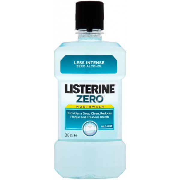 Listerine collutorio Zero si caratterizza per un gusto più delicato e meno intenso per l'assenza di alcol. Se utilizzato due volte al giorno dopo aver praticato un'accurata e corretta igiene orale, garantisce lo stesso identico risultato in termini di pulizia del Listerine normale. L'efficacia di Listerine collutorio è clinicamente testata e contribuisce a eliminare fino al 99% dei batteri che sono all'origine della placca denaria, arrivando anche nei punti difficili da raggiungere con lo spazzolino. Listerine Collutorio Zero è a base di estratti di oli essenziali (Timolo, Eucaliptolo, Mentolo, Metil Saliciato) e fluoruro.