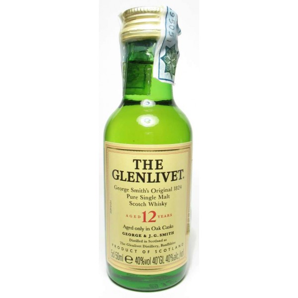 La bottiglia mignon da 5 cl di The Glenlivet Single Malt Scotch Whisky invecchiato 12 anni è il piccolo formato che puoi portare sempre con te, ovunque tu ti trovi.