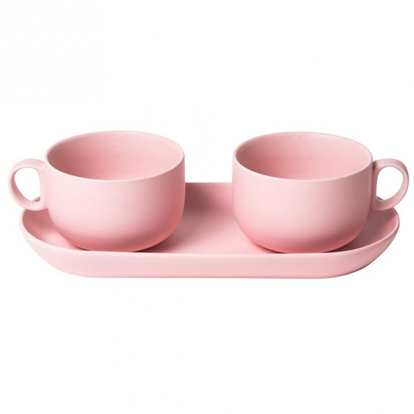 Tazze e teiere: Bis set 2 tazze colazione con vassoio rosa