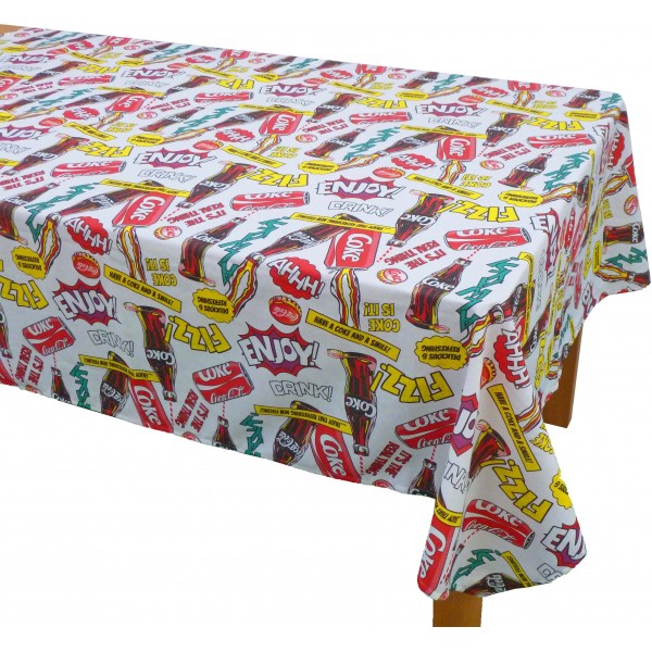 La tovaglia Coca-Cola è l'ideale per dare un aspetto festoso e allegro alla tua tavola. Grazie alle ampie dimensioni di 140 x 180 cm puoi utilizzarla su qualsiasi tavolo. Realizzata con uno speciale tessuto anti macchia, non dovrai preoccuparti di eventuali disastri perché basta una passata con una spugna bagnata per ripulirla e mantenere sempre tutto pulito. Puoi usarla sia per le feste dei bambini che per rallegrare la tua mise en place in occasione di una cena in giardino con amici e famiglia ma anche per la tavola di tutti i giorni.